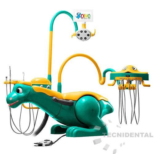 • Sillón Totalmente Eléctrico: Equipado con motores silenciosos y sistema de manos libres, este sillón presenta un divertido diseño en forma de dinosaurio y pedestal en forma de Gato Tom (en el modelo de módulo a carrito), con cinturones de seguridad para la comodidad del paciente.